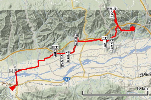 | 別格1番大山寺9:15〜6番安楽寺12:00〜7番十楽寺12:40〜8番熊谷寺13:55〜9番法輪寺14:50〜小豆洗大師堂15:20〜10番切幡寺16:10〜宿19:00 |