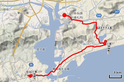 31番竹林寺12:30→武市半平太の墓13:30→32番禅師峰寺14:15 |