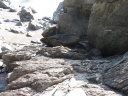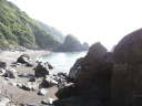 昨日泊まった宿は高台にある国民宿舎で日の出が美しい。ここから37番岩本寺に向かうルートはこのまま県道47号線(横浪黒潮ライン)を進む方法と、打ち戻って県道23号線を進む2通りがあります。47号線は尾根伝いの山の道で眺望抜群、23号線は浦ノ内湾の入り江沿いの海の道。40年前の同行五人は(写真を見ると)47号線を進んだと思われるが、私は番外霊場を巡拝する為に23号線を選択しました。 宇佐大橋に戻る途中、五色ノ浜の横浪メランジュに立ち寄りました。「メランジュ」とは、大きさや種類の異なる色々な岩石が無秩序に混在している地層で「混在」「混合」を意味するフランス語、横浪メランジュは1億3千万年前から7千万年前までの岩石や地層が入り乱れて分布しているとのこと。宇佐大橋を渡って浦ノ内湾に沿って歩いていると、道沿いに遍路小屋がありました。更に静かな海沿いを進んでいくと、小さな土佐黒潮牧場があります。引退した競走馬が余生を過ごす牧場の様で「徳さんのお遍路さん」でも紹介されていました。10時半過ぎに番外花山院廟へ。さらに歩道のない浦ノ内トンネルを通り横浪でコンビニ弁当の昼食。 横浪からは仏坂峠への道を行き4㎞ほどで仏坂峠147mに、ここから仏坂不動尊に降りる遍路道を行きますがこの道のなんと急なこと、標高差40mを200mほどの距離で降りる、また、道の真ん中に石が敷き詰められていてこれが逆効果で滑る、そして、至る所に「へんろ道での事故の責任は当山では一切持ちません」の看板が。慎重に進み、やっとのことで番外仏坂不動尊へ。御本尊は霊岩不動明王、弘法大師が霊岩に不動明王を刻んだと言われています。 翌日のことがあるので距離を稼ぐ為に本日の宿のある多ノ郷を過ぎ、須崎市内に入って番外観音寺を目指しました。しかしバイパス道路を行ってしまい観音寺は通過、土佐新荘駅まで歩いて今日の終りとし、多ノ郷の宿に戻りました。 |
