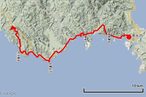 宿7:15→萬次郎少年像7:45→落窪海岸8:15→竜串10:00 |