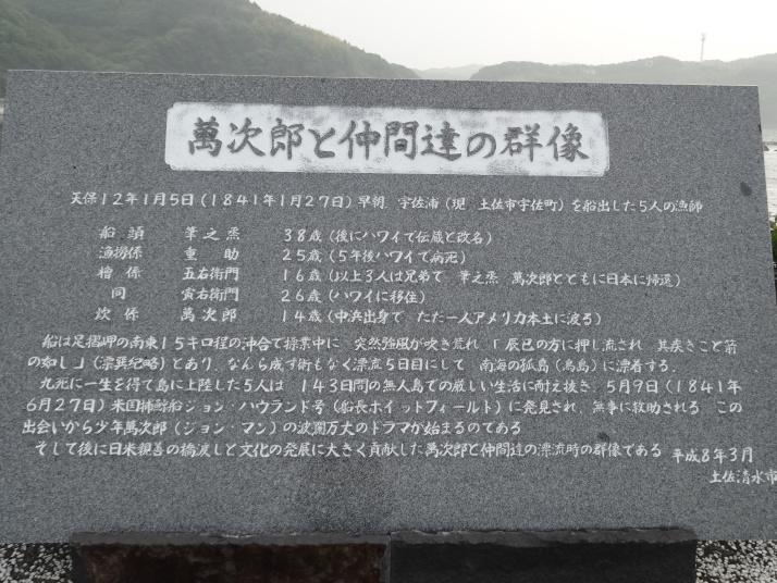 | 天気予報は曇りから晴れということで安心して出発。先ず、万次郎記念館の萬次郎少年像を見て先へ、見応えのある落窪海岸や竜串が続きます。この辺りは化石漣痕の海岸で、波や水流の影響で水中の堆積物の表面につくられた凸凹がそのまま地層面に残されたもの、昭和21年の南海地震により隆起したといいます。竜串の足摺海底館に入りましたが最近の天候の影響で海は濁っていて期待していたようには見えませんでした。