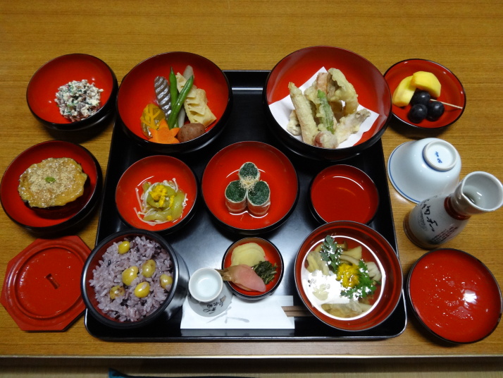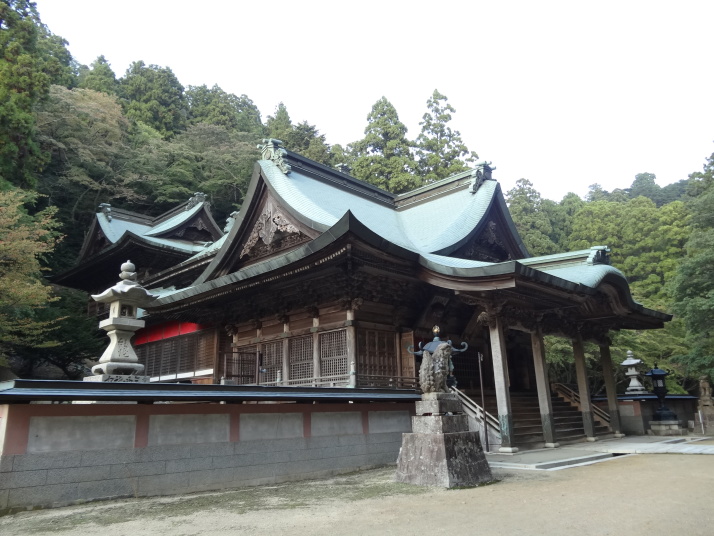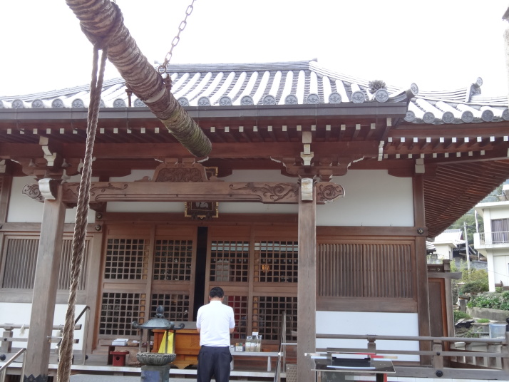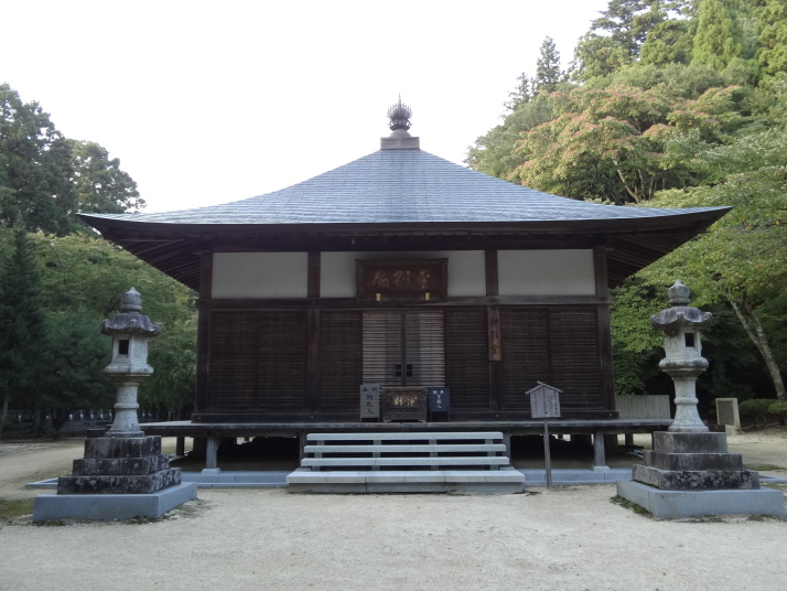 バスで前日の終点、平山まで戻って出発です。暫く行くと別格14番椿堂(常福寺)へ。弘法大師が杖を立てた所から椿の芽が出て大木になったことから椿堂と呼ばれるようになったと。更に24㎞ほど歩いて別格15番箸蔵寺へ。標高540mに本殿があり、150mから500mまではロープウエイを使いました。15時50分に箸蔵寺入口に到着、更に長い石段を登って540mの本殿に到着しました。ご本尊は金毘羅大権現で「こんぴらさん」の奥ノ院、神仏習合の風習を色濃く残すお寺です。本殿、護摩殿、方丈、薬師堂、鐘楼堂、天神社が国重要文化財となっている荘厳な寺院でした。 今日はこの箸蔵寺の宿坊(方丈)泊り。宿泊者は私一人でした。