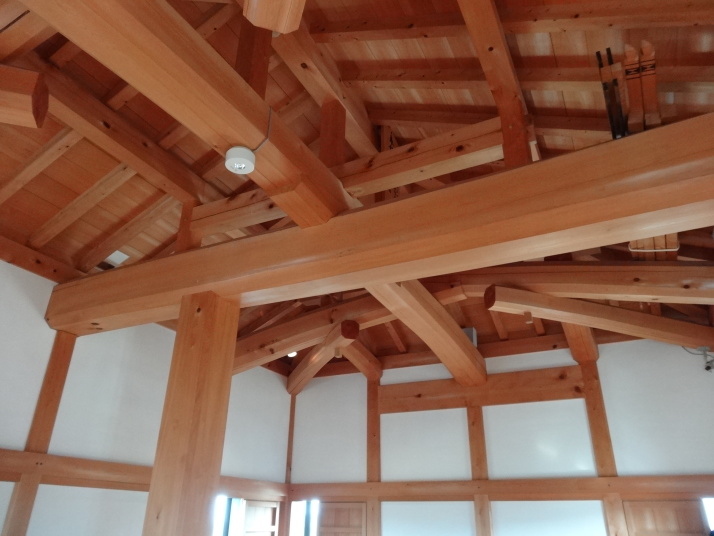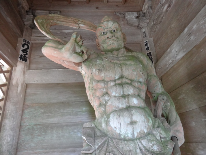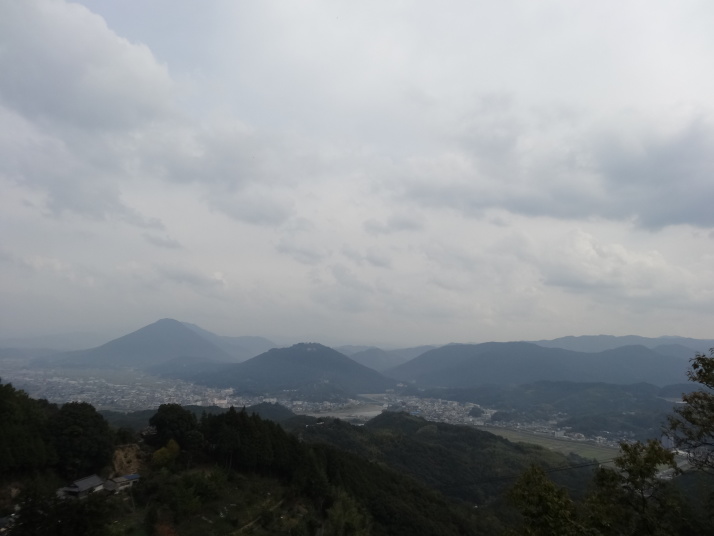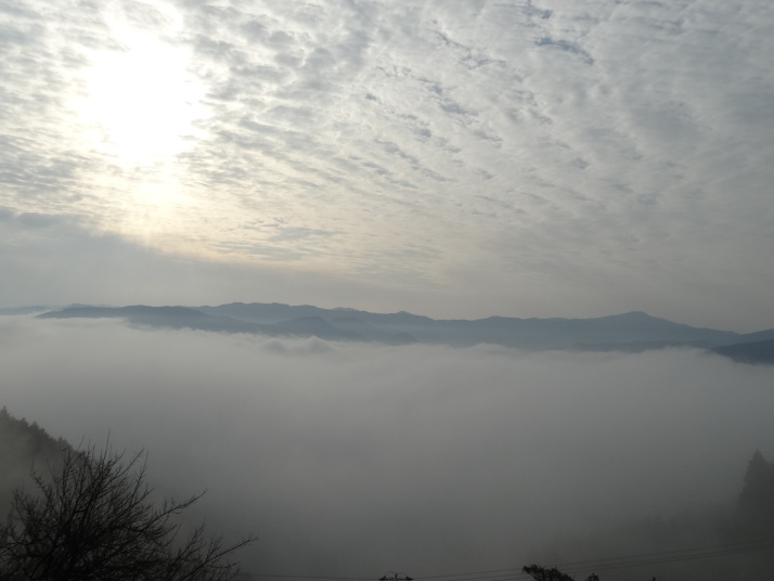 本日の目的は標高812mの出石山頂上にある別格7番出石寺、宿の主人から判りやすい地図をもらって早目に出発。先ずは舗装道路を上っていきますが、一時間程すると大洲の町が雲に覆われ幻想的な風景が現れました。約10㎞登った後は3㎞の遍路道を進んで10時半に別格7番出石寺に到着、大きな大師像が迎えてくれます。山門には銅鐘がかかっており、これを撞きました。本堂脇から伊予灘越しに九州・大分が見えるとのことですが、霞んでいました。境内にあるうどん屋で腹ごしらえをして下山、14時過ぎに大洲の町に戻り、大洲城を見学。