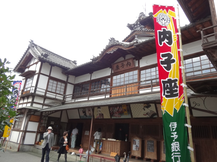 今日は一日ほぼ雨の中を歩きました。7時半に別格8番十夜ケ橋永徳寺に到着、ここは弘法大師が橋の下で野宿した場所であまりの寒さに一夜が十夜にもまさる思いだったとか。杖をつく音で大師の睡眠を妨げないという心遣いから「橋の上では金剛杖はつかない」ということが今日まで伝わっています。 8㎞ほど進んで内子の町へ。内子は江戸から明治時代に木蠟で財をなした豪商の家並みが続く情緒のある町。歌舞伎や人形浄瑠璃が演じられる内子座があり、中に入りましたが素晴らしい劇場でした。内子座では地元のいろいろなイベントの発表会も行われていて、地元に根ざした運営が垣間見られました。更に進んで、16時に番外楽水大師堂を経て今日の宿に到着、本日の宿泊は歩き遍路3人でした。