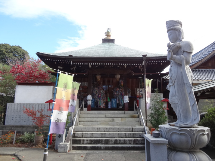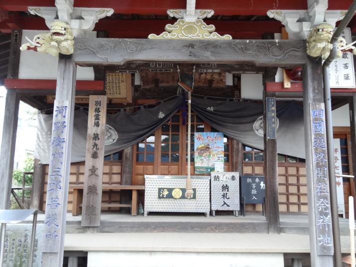 更に1㎞ほど進むと別格9番文殊院徳盛寺に着きます。衛門三郎の菩提寺で堂内には衛門三郎伝説の奉納絵が掛けられていました。番外札始大師堂は弘法大師を待った衛門三郎が大師に会えないので札に自分の名前を記してこのお堂の柱に打ち付けた、これが納札の始まりとされている場所です。