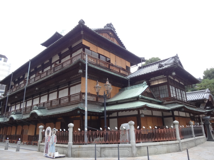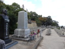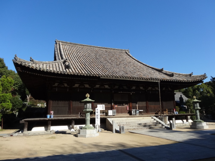 道後温泉を出発、本館前で外人さんにシャッターを押してもらって記念撮影、先月の松山観光で入湯しているので今回はスキップです。狭い通学路をすり抜けながら山頭火「一草庵」へ。47歳の時に八十八ヶ所を巡拝した後、11年後の昭和14年、死に場所を求めて再び四国遍路に出た山頭火は松山に安住の地を見つけ、一草庵と名付けた。翌15年10月11日未明にこの庵で脳溢血により死亡。生まれは山口県防府市で、3年前に山陽道を歩いた時に生家跡を訪れました。その先、松山大学のグランド脇の小高い丘にロシア兵墓地がありました。日露戦争の捕虜で亡くなった兵士の墓で、当時松山市民は捕虜を手厚く迎い入れ交流も盛んに行われたといいます。 9時に番外蓮華寺に到着、住職からみかんをお接待されました。数年前まで教師をしていたそうで、今日もこれから中学生が見学に来るとのことで、準備に追われていました。長閑な遍路道を進んで10時過ぎに52番太山寺の「一の門」へ。更に路線バスも入る道を進むと「二の門」である仁王門(重文)があります。ここから上り坂が続き、石段を上ると「三の門」の山門へ。本堂は嘉元3(1305)年に再建された国宝で、重厚なお堂です。 |