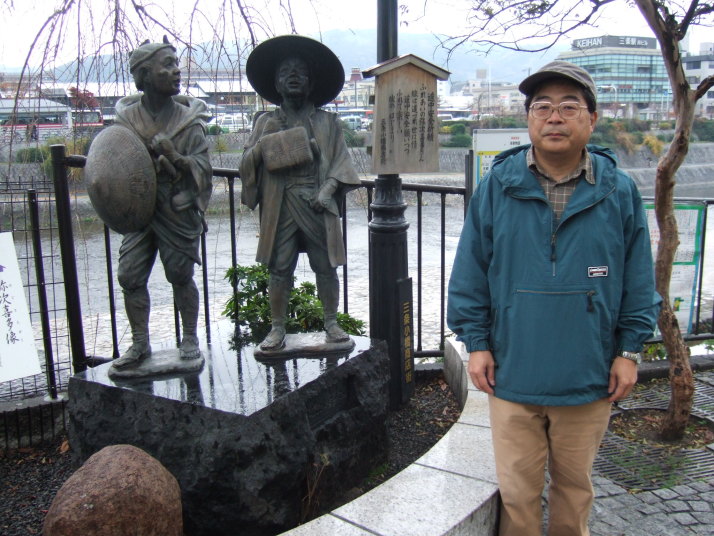 いつもの通り、6時前に家を出て、「ひかり363号」で京都へ、大津駅に戻って11時から歩き始めた。 暫く歩くと、蝉丸神社下社に着く。小学生の時に覚えた百人一首の「これやこの ゆくもかえるも わかれては 知るも知らぬも 逢坂の関」の碑があった。そして逢坂の関跡を越えると、日本一のうなぎ「かねよ」の看板がある。最後の昼食でもあるので、ここは頑張ってうなぎを食べた。旨かったが日本一かどうかは判らない。更に進んで山科を過ぎると天智天皇御陵がある。最後の紅葉と静寂な一瞬を過ごした。後は蹴上までだらだらと登りながら、三条通りを進む。 そして14時50分に三条大橋に到着した。 夜は先斗町の居酒屋で祝宴を開き、その後は女の子のいるカラオケへ、更にバーに行ってジャズを聴き、最後はラーメンで締め。京都の夜を堪能してホテルに戻った。 これまでの旅を総括すると次の通り。 @ 期間 2005年12月10日〜2006年12月9日 A 日数 23日間 (内、東海道は22日間) B 距離 527km (内、東海道は495km) C 歩数 932千歩 |