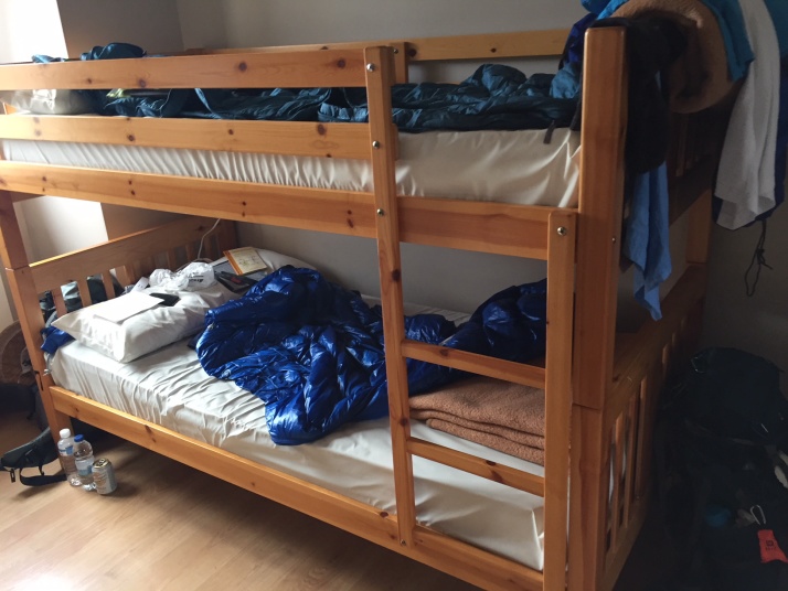 ララソアーニャの橋は、Puente de los Bandidos(盗賊橋)。昔、この辺りは追剥ぎが良く出たのでこの名、でも、今ではアルベルゲもある環境良好な村になっています。 本日のアルベルゲ(巡礼宿)サン・ニコラスは大変きれい。6人部屋で男3、女3の組合せ。最初の宿泊地オリソンで一緒だった人が4人もいて和気あいあいと。同室のマイクに日本語で名前を書いてあげました。 夕食は村で唯一のレストランで。アイルランドから来た家族と一緒に食事をしました。父と娘と婚約者でカミーノを歩いている。ラグビーワールド杯、旅の事、家族の事など楽しく話しました。 |