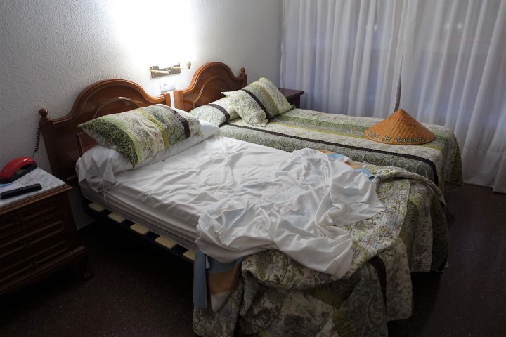 Ciruenaの村は再開発地域で高級住宅街が続きますが「売出し中」が目立ち、どうも思惑通りにはいっていないようです。 今日の目的地の Santo Domingo de la Calzada サント・ドミンゴ・デ・ラ・カルサーダは聖ドミンゴが生涯をかけて巡礼者の為に石畳、救護施設なとを建設した所。大聖堂の中を見学すると伝説に基づく生きたニワトリがいました。また、泊まったアルベルゲではこのニワトリを何羽も飼っていて、交代制で大聖堂に出演させているようです。パン屋にもニワトリを模ったパンが並びます。 夜は同じ宿に泊まった写真家の平野さん、Mr.Gomitoryこと山崎さんと一緒に食事。帰りがけにマーケットで明日の果物を買う時、自分で量って値札をつける経験もしました。 |