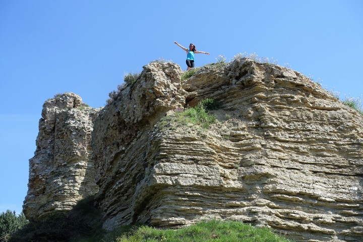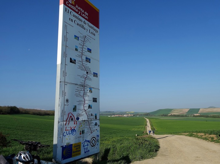 ベロラドはこの辺りでは比較的大きな村、巡礼者相手の宿やバルが多くあります。サンタ・マリア教会の塔にはコウノトリの巣、中にはモーロ人殺しと巡礼姿のサンティアゴ像があります。ベロラド城跡が高台にあり、登ると町を一望出来ます。丁度、一緒になったオランダの女の子に写真を撮ってもらいました。