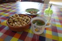 グラニョンを過ぎて暫く歩くと、カスティーリャ・レオン州に入ります。聖ドミンゴの生まれた村ビロリア・デ・リオハで入った寄付制の休憩所、不揃いの落花生が美味くて止まりません。聖ドミンゴが生まれたCasa de Santo Domingo de la Calzadaには2羽のニワトリを従えたドミンゴ像があります。