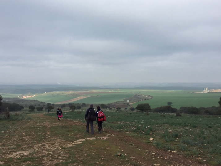 薄曇りの中をスタート、アタプエルカの村で昨日夕食を共にしたドイツのユルゲンさんと一緒に朝食。今日も私と同じホテルに泊まるらしい。ここから登りになり1,080mの峠の頂上に十字架があります。その後は、粘土質の泥が靴にへばり付く道や草の道を下り、Orbaneja(オルバネハ)の村で休憩、トレドから来た陽気なポラがいました。