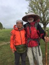 旅のトラブルその2。菅笠が一部壊れました。この菅笠は奥の細道で使ったものを補強して持ってきたもの。以前も壊れた箇所が連日の強風で再度やられてしまったらしい。巡礼者からサインを貰っているので何とか日本に持って帰りたい。幸い、今日も同行した山崎さん(別名Mr.Gomitory)に応急修理をしていただきました。