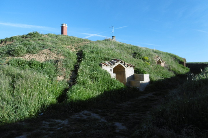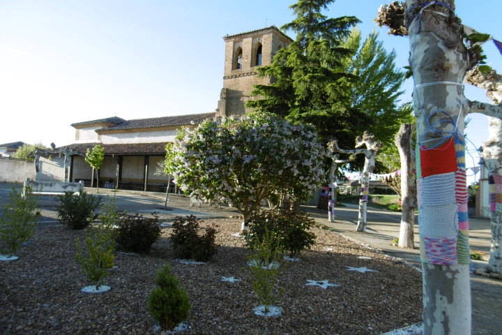 朝の気温は3度、アルベルゲの庭には霜が降りていました。ここの村Terradillos de los Templariosはテンプル騎士団の支配下にあったといいます。サン・ペドロ教会が朝焼けに染まっていました。最初の村Moratinos モラティノスには丘の斜面に横穴貯蔵庫があり食料やワインを貯蔵しているとのこと。サン・トーマス教会の木々には村のおばあちゃんが編んだ織物で覆われています。 サン・ニコラスの村を過ぎると道はセンダに変わり、バルデラドゥエイ川(Rio