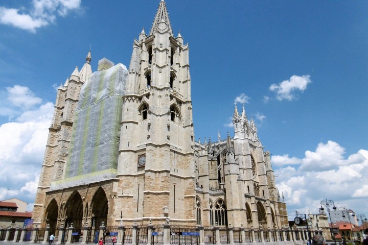 Portilloポルティージョ峠(890m)に到着。ここからは下りになり、レオンの町を見ながらの歩き。途中のPuente Castroで久し振りにしっかり昼食を取りました。 旧レオン王国の首都だったレオン市は、史跡の街。二千年の歴史の中で生まれた至宝の建築がそこかしこに見られる。という事で休養を兼ねて連泊してじっくりと見る事にしました。今日は大聖堂とガウディ。この大聖堂もブルゴスと同様に規模の大きさに圧倒されます。ゴシック様式の重厚な建物、更に中に入ると700点以上と云われるステンドグラスが迎えます。その美しさはカメラでは到底表現出来ません。ガウディのカサ・デ・ロス・ボティーネスは1,892年建築、現在は博物館になっているようです。 夜は、Barrio Humedoバリオ・ウメドのバル街で三軒ハシゴ。スペインのタパス料理とワインを満喫、最後はビールで締めてお開き。帰りに日本食の店を発見、明日の夜は待望の日本食か。 宿は久々のホテルで一人部屋、ゆっくりしよう。 |