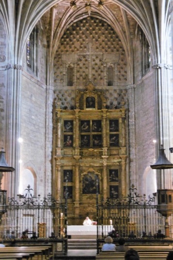 前日ホテル泊で朝はゆっくり過ごしてから出発。先ずは今日の宿へ。朝8時から受け入れているアルベルゲに9時に入りました。4人部屋ですが、当然一番乗りです。 散策の最初はサン・イシドロ教会へ。11世紀のロマネスク様式建築の代表と言われ、特に礼拝堂には素晴らしいフレスコ画がありますが、学芸員の説明がスペイン語なので今一つ内容の理解が?? フレスコ画は写真撮影不可でした。