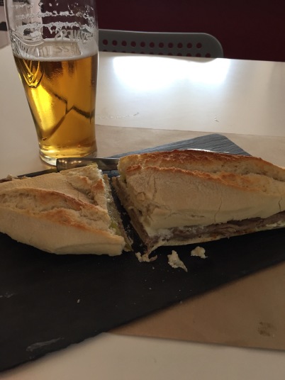 昨日はホテル泊まりで10日振りにバスタブに浸かって疲れを癒し、今日からの最後の難関 セブレイロ峠越えに備えました。 今日の宿泊は教会がやっているアルベルゲで一泊5€。まったりと長閑な時間を過ごしました。昼はセルベッサ・グランデにサンドイッチを頼んだらデカいサンドイッチで悪戦苦闘、お腹がいっぱいになりました。