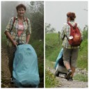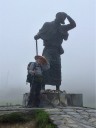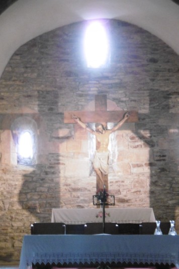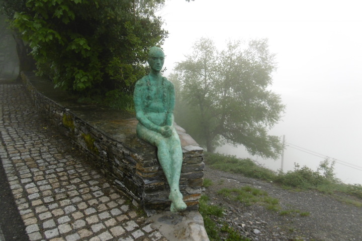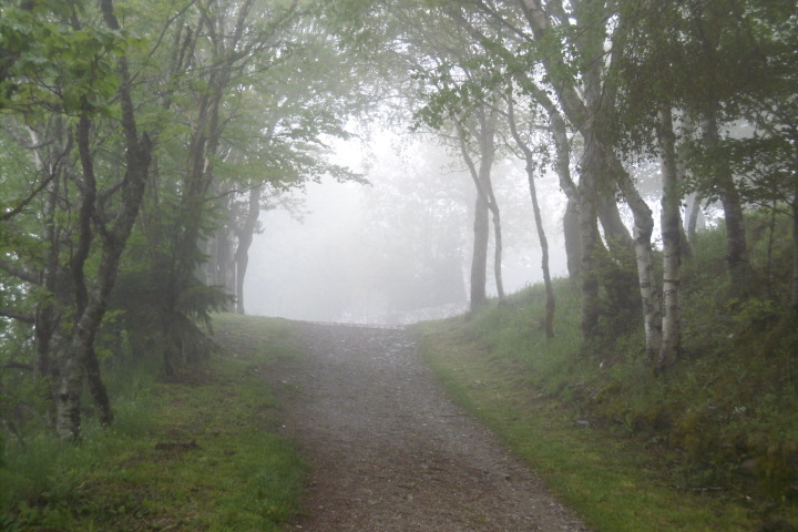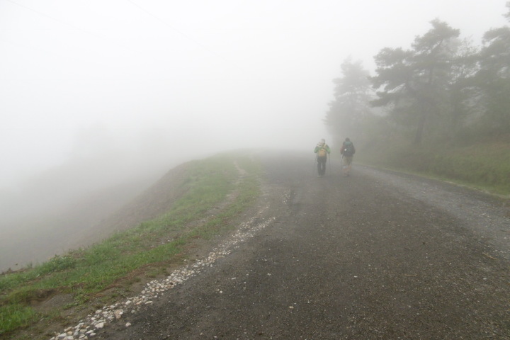 雲海が見えたり、山の雄大な景色を拝めたりと良い事もありました。 最初の村La Laguna ラ・ラグナの近くになると大きな犬が出てきて前を進みます。何となくこの犬に導かれるように進んで行くとバルがありました。ここで朝食、あの犬はここの飼い犬のようでした。 オ・セブレイロにあるサンタ・マリア・ラ・レアル教会は9世紀に建てられた巡礼路で最古の教会、中はキリスト像があるだけの極めてシンプルな教会です。近くにケルト時代から続く茅葺きの円形住居跡Pallosa パジョッサもありました。 昨日から喉の調子がイマイチな事もあり、今日は無理をせず、当初予定の場所より7km手前の村に泊まることにしました。宿に着くなり雨が降ってきて、いいタイミングでした。 今日のハイライトはロシアから来たナターシャ。荷物をゴロゴロ転がしながら厳しいアップダウンを歩いています。普通はこういう荷物はトランスポートして軽装で歩きますが、彼女はこの形でサン・ジャンを4月23日に出発してここ迄来たとの事。大国ロシアの人のやる事は常識では測り知れません。スタイルも「ちょっとそこまで散歩に」という風。でも、ソニーのデカイ一眼レフを持ってました。 |