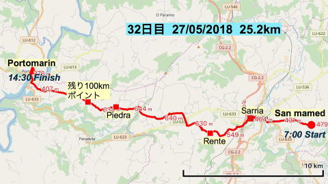 | 32日目 2018.05.27(日) San Mamed ⇒ Portomarin 25.2km |