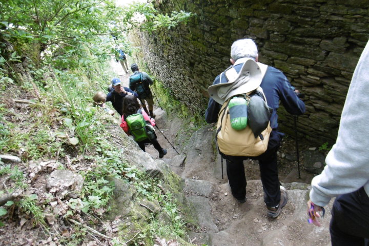 いよいよ巡礼も佳境に入り今日はサンティアゴまで残り100kmの標識を越えます。朝から曇りの天気、サリアは大きな町で、フランス人の道を歩く人の44%はここサリアを出発点とするようで、アルベルゲを始め多くの宿泊施設が揃っています。また、立派な教会も目につきます。 サリアを抜けるとジワジワと上りになり、ピークは660mのAlto Paramoで標高差260m、その後は350mのPortomarinまで一気に下ります。最後は最も急な坂が待っていました。安全な迂回ルートを選んだつもりが急坂の正規ルートへ行ってしまったようです。残り100kmの標識は落書きが多く汚れています。これは残念なこと。 今日の目的地ポルトマリンは、元はミーニョ川を堰き止めたダム湖に沈んだ町。それを今の新しい形の町にしたといいます。Iglesia de San Juan サン・ファン教会は12世紀のロマネスク建築ですが、ダム湖に沈む前に石を一つ一つばらして運び上げて復元したもの。石にそのNoが振られていました。 予定のアルベルゲに行くとどうも予約が上手く通っていなかったらしく満室でダメ。ホームページから予約メールを送ったが行き違いがあったらしい。でも、近くのアルベルゲを紹介してもらって事なきを得ました。また、今日は日本人では珍しい夫婦の巡礼の方にお会いしました。 |