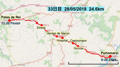 | 33日目 2018.05.28(月) Portomarin ⇒ Palas de Rei 24.6km |
