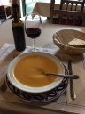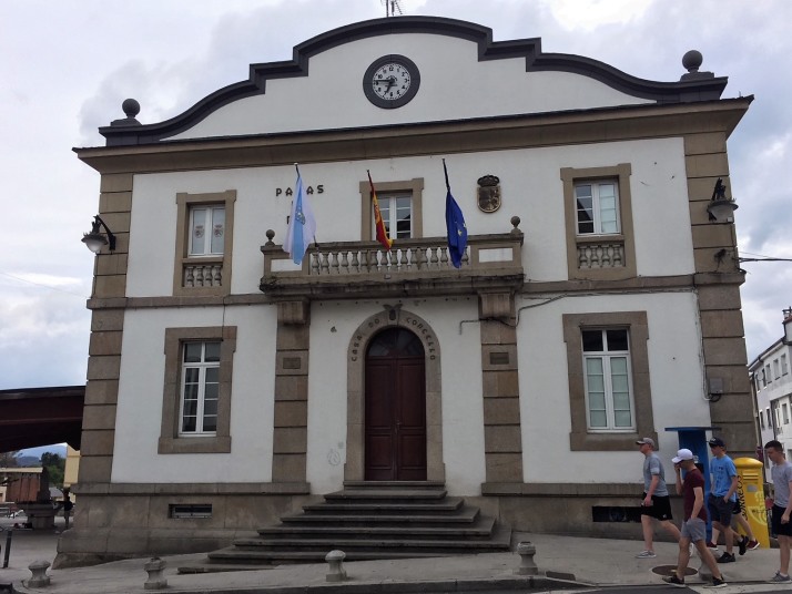 曇りで肌寒い中をスタート、まだ外はうす暗い。直ぐに上りが始まり、標高380mのポルトマリンから720mのリゴンデまでじわじわと登って行く。中々巡礼の道は楽をさせてくれません。その後は多少のアップダウンは有るものの小さい村を通過しながら、今日の目的地パラス・デ・レイ553mまで下ります。 途中Ligonde リゴンデの村には、ボランティアで運営している休憩所がありました。まるで四国のお接待所のようなもの。フレンドリーなスタッフが気持ちよく迎えてくれました。その後はガリシアの緑の中を歩きます。 今日の宿泊地Palas de Rei パラス・デ・レイは西ゴート族の王の宮廷があったとの事ですが、今ではその面影は無く、ただ9世紀にアルフォンソ3世が残したロマネスク様式の教会があるのみです。 夕食はホテル(と言っても25€のHostal)の女性に紹介された店で、美味いガリシア料理を食べました。野菜スープ、たらBacalaoのガリシア風、チーズケーキ、パン、ワインで10€とお手頃です。 |