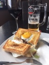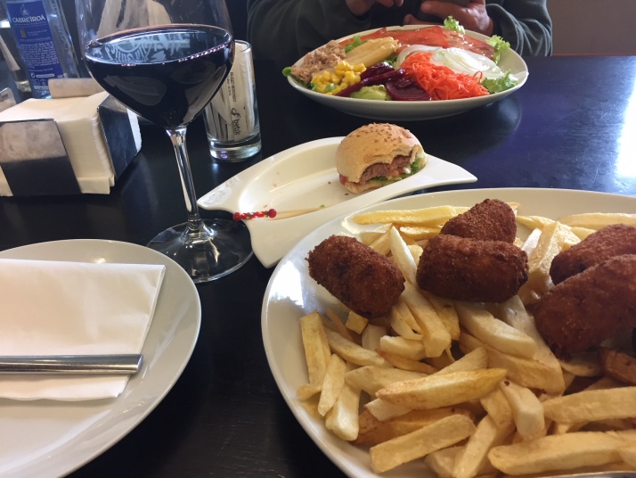 夕食はアラカルトで、でも、大量のポテトの上のコロッケには閉口。ポルトガルの最南端からポルトの道を歩いて来たイタリア人と偶々同席。イタリア語、日本語、時々いい加減英語で会話しながらの食事でした。 |