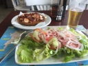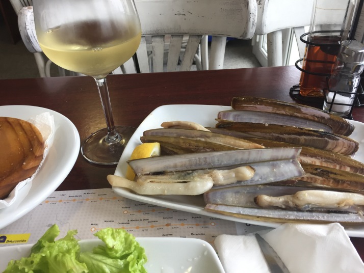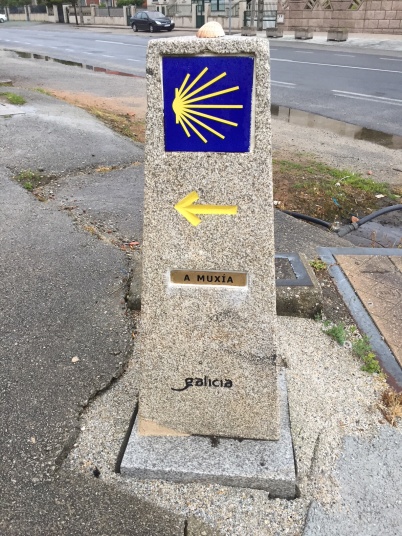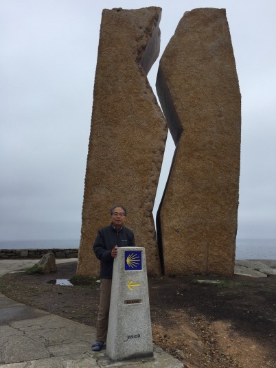 今日もやはり雨でした。カミーノ最後の日を悲しむ涙雨か最後まで試練を与える神の雨か。一向に止まない中、逃げ場の無い水たまりが三ヶ所、仕方ないので水の中にジャブジャブ、当然靴の中にも入ってきます。 宿に入るまで雨は止まなかったものの、シャワー・洗濯をしていると雨はあがり、昨日の様に太陽が出るまではいかないものの、町の散策が出来る天候に、港を歩いてみました。ムシアには、聖母マリアが「石の船」に乗ってこの地に出現したという伝説や聖ヤコブの遺体が到着したという話もあり、聖地の一つになっています。 この聖地到着をもって私のカミーノは無事終了です。これまで拙い旅日記を読んで頂き有難うございました。 歩いて、食べて、飲んで、出して、寝て、また歩く。人間の基本的営みだけを41日間続けられる贅沢、歩く道を作ってくれた千数百年に亘る先人達へ感謝、歩く事を受け入れてくれた家族、応援してくれた友人の皆さんに感謝、感謝のカミーノでした。本当にありがとうございました。 |