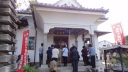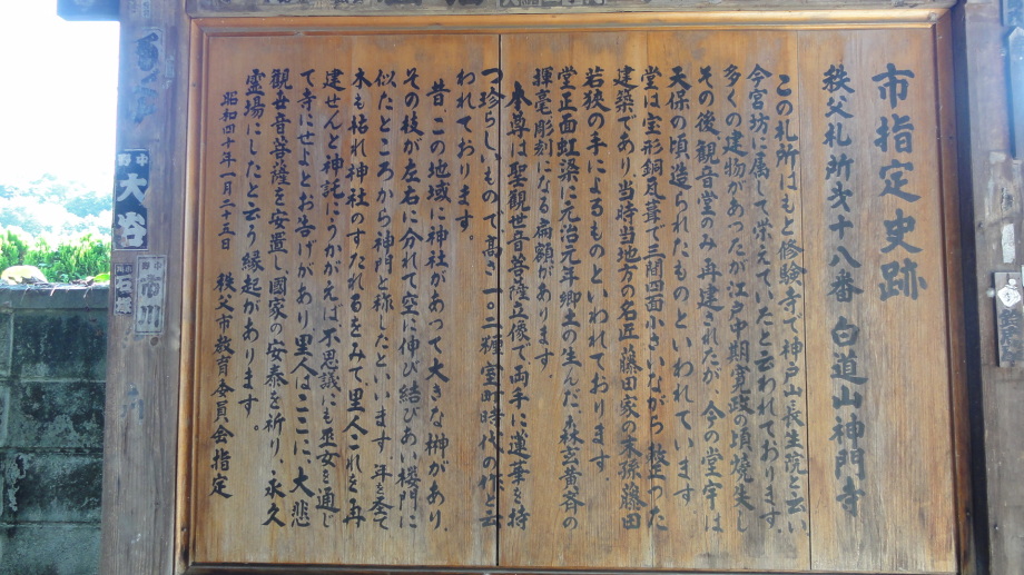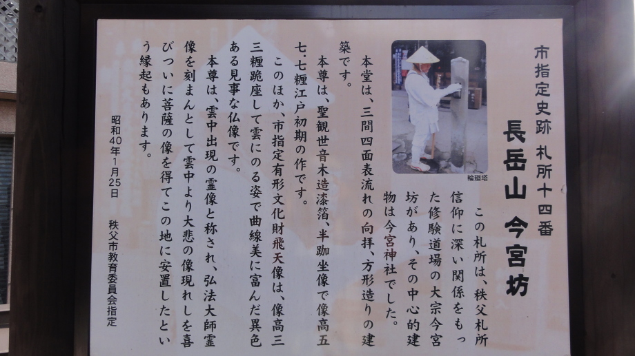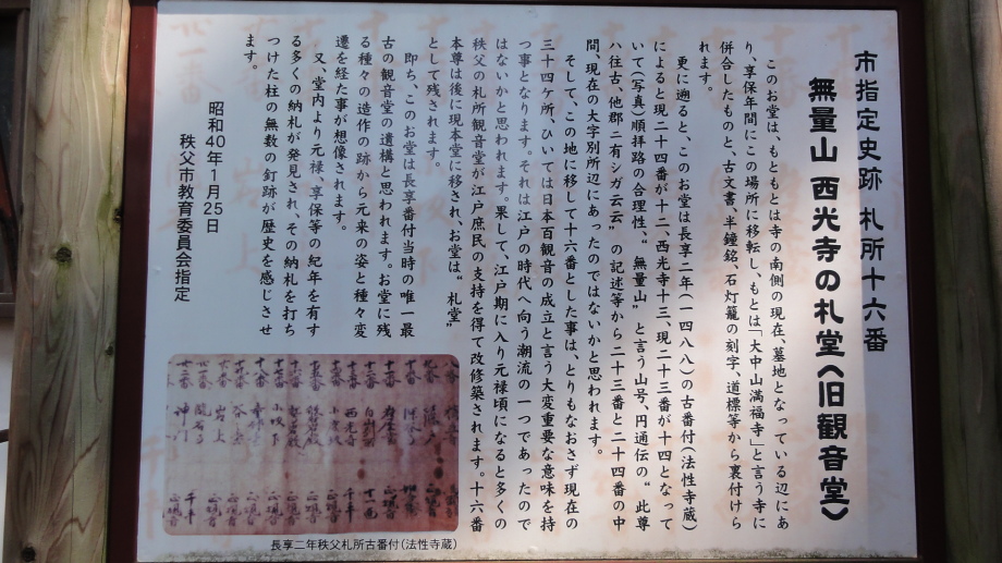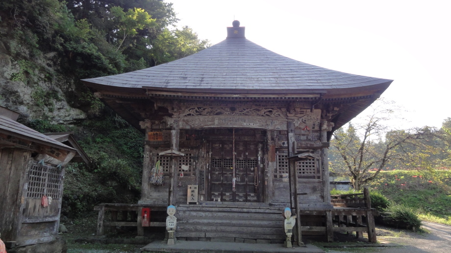 2日目は、前半は秩父市街の中心を回り、札所20番からの江戸巡礼古道は昔ながらの道を歩くことが出来ました。 18番神門寺(ごうどじ)を経て、本堂が巨大な岩盤上に建てられている19番龍石寺(りゅうせきじ)に10時35分に到着。荒川を渡って20番岩之上堂(いわのうえどう)へ。更に藁葺の仁王門(ここの仁王像の顔が童子のよう)がある22番童子堂(どうじどう)を経て急な坂道を登って23番音楽寺(おんがくじ)へ。近くの蕎麦屋で昼食をとり、また、山道を歩いて24番法泉寺(ほうせんじ)に。更に進むと「秩父錦 酒造りの森」があります。酒蔵資料館と観光物産館があり、試飲コーナーもあったので遠慮なく頂きまました。 ちょっとほろ酔い気分で歩いていると、道路に牛が! 牧場から牛舎の戻る途中で止まっている様子、動く気配もないので暫く睨み合い。牛が去るのを待って出発です。15時過ぎに25番久昌寺(きゅうしょうじ)に到着、再び荒川を渡って秩父鉄道を横切り、26番円融寺(えんゆうじ)へ。更に1.5q離れた奥の院岩井堂へ行きます。岩井堂は昭和電工の工場内にあり、受付に行くと弁えたもので直ぐにパンフレットをくれて道案内をしてくれました。暫く進むと直段204段の石段、更に自然石の石段を登るとやっと懸崖造りのお堂に着きました。 本日は此処までとし、影森駅から御花畑まで秩父鉄道で戻って、西武秩父の仲見世で前回寄った店に入り一杯やって帰宅しました。 |
