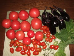 ジャガイモ、キュウリ、トマト、ナス、ピーマン、トウモロコシ、エダマメ