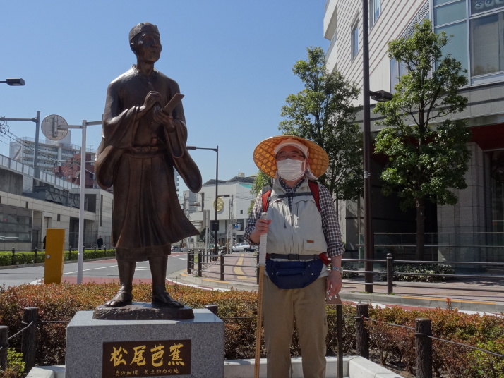 深川の採茶庵から旅立ちです。後輩の邑口杉風が深川から千住まで見送ってくれるという事で千住までは同行二人。採茶庵を出発して直ぐ芭蕉稲荷神社(芭蕉庵跡)で旅の安全を祈願していると、やはり芭蕉に興味のありそうな見知らぬ方から「お気をつけて」と激励を受けました。隅田川沿いを進んでいくと、散歩している保育園児からも熱い視線?。先ずは南千住駅前の芭蕉像へ。今年3月4日に建立されたばかりで、以前からあった「芭蕉は船で隅田川を北上し千住の地で陸に上がったが、北岸(北千住)なのか対岸(南千住)なのか」の論争が更に激しくなりそうです。素盞雄神社には「行く春や鳥啼き魚の目は泪」の矢立初めの句碑があり、旅立ちに相応しい御朱印をもらいました。 14時頃、毛長川を渡り東京都から埼玉県に入ります。草加宿に入ると、自転車に乗った小父さんから「奥の細道か?今日は3月27日だからな」と声を掛けられました。その先にある草加宿神明庵で休憩していると、この小父さんが再度来て草加煎餅をお接待してくれました。まるでお四国にいるような感じでした。草加松原には、曾良や芭蕉の像、矢立橋や百代橋があり、その間が松並木で綺麗に整備されています。2014年3月に「おくのほそ道の風景地 草加松原」として国指定の名勝になっています。蒲生の一里塚に来ると既に15時半を回っていました。先を急ぎましたが越谷で17時近くになってしまったので、ここから電車に切り替え春日部に行きました。 夜は宿の近くの粕壁うまいもの横丁にある「万や」へ。明日からの馬力を付けようと馬刺しなど注文して埼玉の銘酒神亀を楽しみました。 |