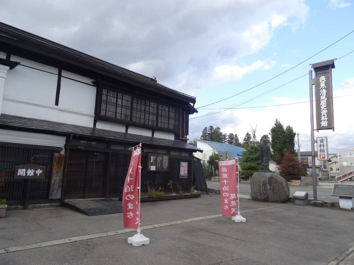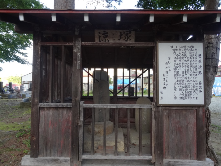 国道47号線(北羽前街道)を進み、途中から左折して県道28号線に入るとあとは尾花沢まで道なりです。10時半に山刀伐峠の入口に到着、登り口が分からず少しウロウロした後、登り始めました。ブナ林の美しい、結構急な坂が続きます。11時に山頂に到着、俳人・加藤楸邨の筆による「奥の細道」顕彰碑と子持ち地蔵、子持ち杉がありました。ここから下り、28号線に合流して暫くすると関谷の集落に「関谷番所跡」の標柱がありました。 順調に歩を進め、3時半に尾花沢に到着です。芭蕉は旧友の鈴木清風を訪ねて尾花沢に10泊しています。私が週一回通っているオープンカレッジの受講生達が4年前に尾花沢を研修旅行した時にお世話になった諏訪神社の宮司さんと芭蕉清風歴史資料館で待ち合せしました。更に鈴木家15代ご当主にもお会い出来、一緒に清風の財で建立した念通寺や芭蕉が7泊した養泉寺、諏訪神社を回りながら貴重な話を伺うことが出来ました。 |