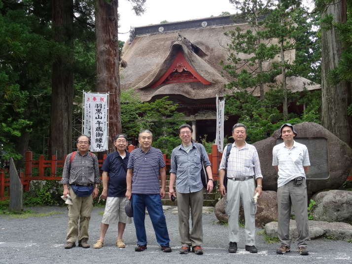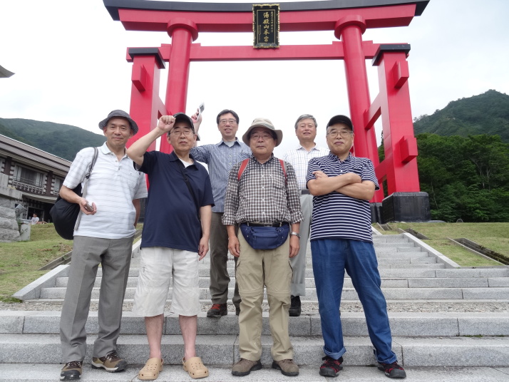 学生時代の仲間6人で出羽三山合宿を実施しました。初日は仙台駅を10時に出発、秋保温泉を経て12時過ぎに大きな湯殿山神社大鳥居がある参籠所に到着、そこから30分歩いて湯殿山神社本宮に着きました。出羽三山の奥宮といわれる湯殿山神社本宮は昔から「語るなかれ」「聞くなかれ」の修験道の霊地で、写真撮影禁止です。 御神体は茶褐色の大きな岩。先ず入口で裸足になってお祓いを受けます。そして御神体を参拝、更にお湯が流れる御神体を登って行場である御滝神社に向かって参拝し、最後に御神湯(足湯)に浸かって全ての参拝が終了します。これほど神秘的な神社の参拝は初めての経験です。 その後は「ななかまど亭」で蕎麦の昼食。ボリューム、味ともに申し分なく大満足でした。 |