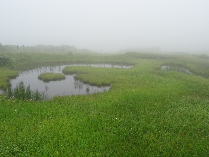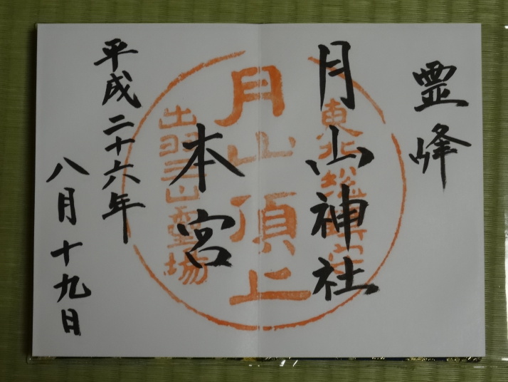 8時に休暇村を車で出発、8時40分月山七合目(合清水)から歩き始めました。曽良日記によると芭蕉も七合目(旧高清水)まで馬を利用しているのでそれに倣いました。30分ほどで八合目の弥陀ヶ原に到着、ここから岩がごろごろする登山道を登り、10時半に九合目の仏生池を通過、11時45分に山頂に着きました。九合目を過ぎると濃いガスが発生したり、強風や雨が降ったりと天候の変化の中を歩き難い道を進むことになりました。 山頂で月山神社を参拝、登拝認定証とご朱印をもらいました。出羽三山のご朱印は全て両開きの大型のご朱印で、伊勢神宮と同じ様に神社間で統一性があります。登頂後は今日の宿、銀山温泉に向かいました。 |