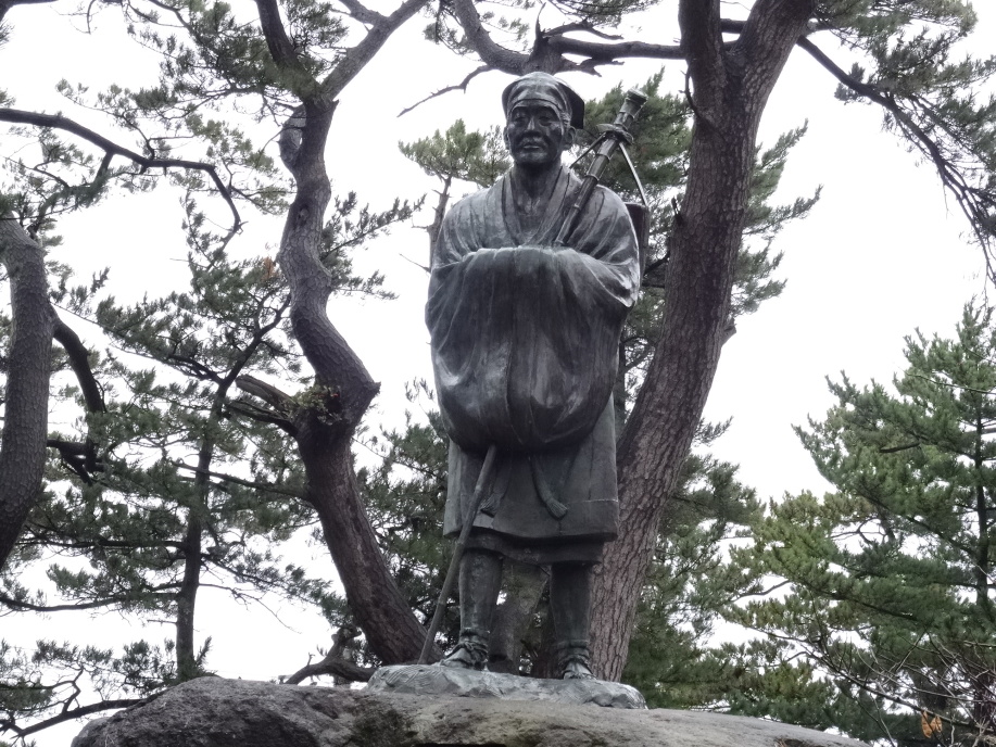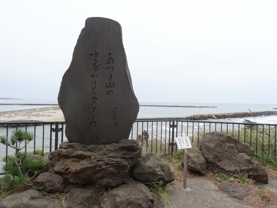 曇り空の中をスタート。高橋酒造店に寄ってから鳥海山大物忌神社吹浦口ノ宮を参拝、この神社は鳥海山(大物忌神)を祀る神社で御本殿は鳥海山山頂。立派な神社でした。 女鹿の集落を過ぎ、三崎公園に着くと雨模様になってきました。芭蕉も象潟に向う時は雨だったので嬉しくなります。海沿いに遊歩道も整備されていますが、芭蕉も通った三崎山旧街道はタブの原生林に囲まれ昔ながらの雰囲気を残しています。大師堂や一里塚跡があります。小砂川の食堂「伊原純平」で昼食をとり、雨の中を進みます。バス停が小屋になっているので、そこで休憩をしたり地図を見たりしながら14時に宿に到着、荷物を預けて象潟散策をしました。 芭蕉が滞在した3日間の様子を大きな絵図にして掲げてありますが、泊まった能登屋跡、向屋跡には案内板がありません。3年前に来ているので、何度か行ったり来たりして見つけましたが、遠方から楽しみに来た人が分からずじまいで帰って行ったとしたら残念です。 続いて蚶満寺を見学。参道から山門への様子は当時のままと言われ、境内には芭蕉像や西施像、本堂の近くに芭蕉句碑「象潟や雨に西施がねぶの花」があります。 夕食は吉田類が「奥の酒道」で立ち寄った笑福を予定していましたが定休日。そこで宿に近い割烹居酒屋へ。地元にかほ市の飛良泉(1487年創業)と斎彌酒造の由利正宗を燗で頂きました。飲みながら色々と話をしていると、貴重なご意見を伺いましたとか言って、サービス2品。ちょっと得した気分になりました。 |