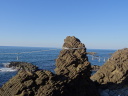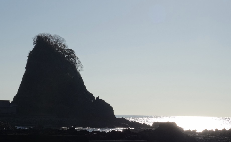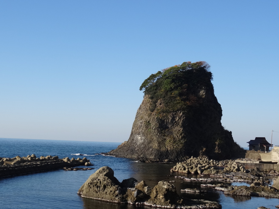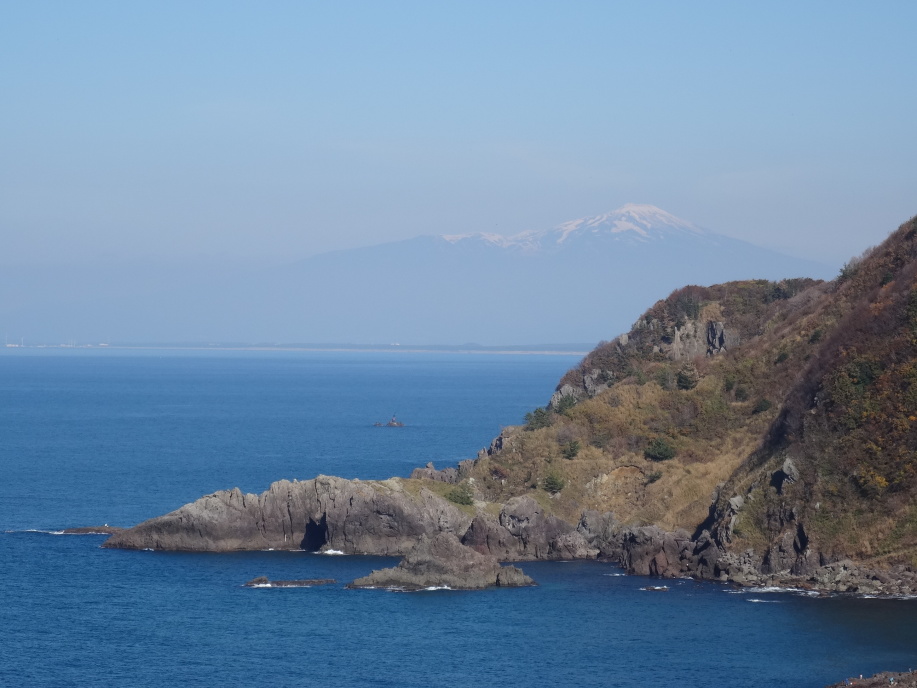 今日の行程は、「大山より三瀬へ三里十六丁、三瀬より温海へ三リ半。」(曽良日記)と同じです。 三瀬の町並を過ぎて笠取峠へ向かう遊歩道に入っていくと、遊歩道の崩落箇所を調査している二人組に会って暫く雑談。この先の展望台から鳥海山が綺麗に見えると教えてくれました。更に進んで東屋のある展望台に着くと、鳥海山の絶景が飛び込んできました。暫くここで日本海と鳥海山に見入っていました。この先の小波渡、堅苔沢の景色について、曽良日記では「小波渡・大波渡・潟苔沢ノ辺ニ鬼かけ橋・立岩、色々ノ岩組景地有。」とあり、同じく景色を楽しんだ事が伺えます。 立岩、鬼かけ橋(石碑)、塩俵岩など面白い岩が有りました。塩俵岩には芭蕉句碑「あつ美山や吹浦かけてゆふ涼み」が建っています。 |