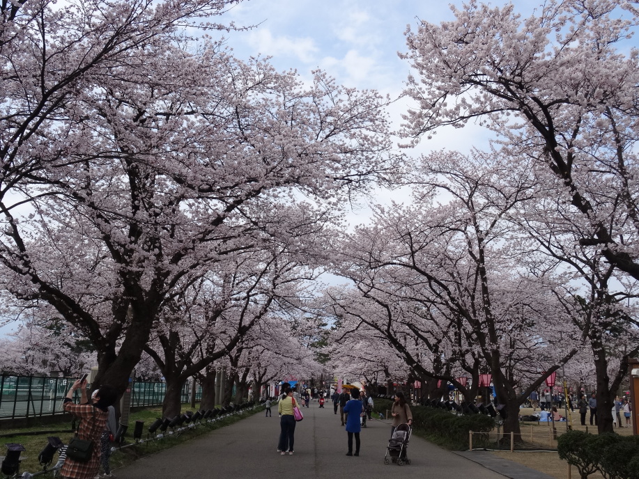 海に近い道を暫く進むと人魚姫伝説公園があります。小川未明作「赤いローソクと人魚」は雁子浜の人魚塚の伝説をヒントに書かれたそうですが、その人魚は佐渡出身です。この辺りから綺麗な北陸の山々を見ながらの歩きになります。酒蔵2軒を巡って犀潟駅で休憩、構内には片岡鶴太郎が書いた駅名看板が掛けられています。黒井宿の本敬寺の境内に芭蕉句碑「さびしさや花のあたりのあすならふ」があります。奥の細道紀行300年記念事業で建てられた由(でも、この句は奥の細道とは関係ない)。 信越化学や新日鉄住金の工場を過ぎ、関川に沿って南下、中央橋を渡る辺りから急に人出が増えてきます。高田公園では「高田城百万人観桜会」が開催されています。4000本と云われる桜は満開でした。更に酒蔵巡りを挟んで芭蕉が高田で泊まった池田六左衛門宅跡へ。儀明川にかかる高田橋の袂にあるといい、現在はTakada556ビルになっていました。 ホテル到着後は隣の「市民いこいの家」の大浴場でさっぱりしてから夕食へ。日曜なので休みの店が結構ある中、居酒屋平次で新潟の酒を友に声の大きな大将と話しながらひと時を過ごします。明日行く予定の芭蕉が今町(直江津)で泊まった古川市左衛門宅跡の場所(旧マルセンデパート)を訊き出しました。 |