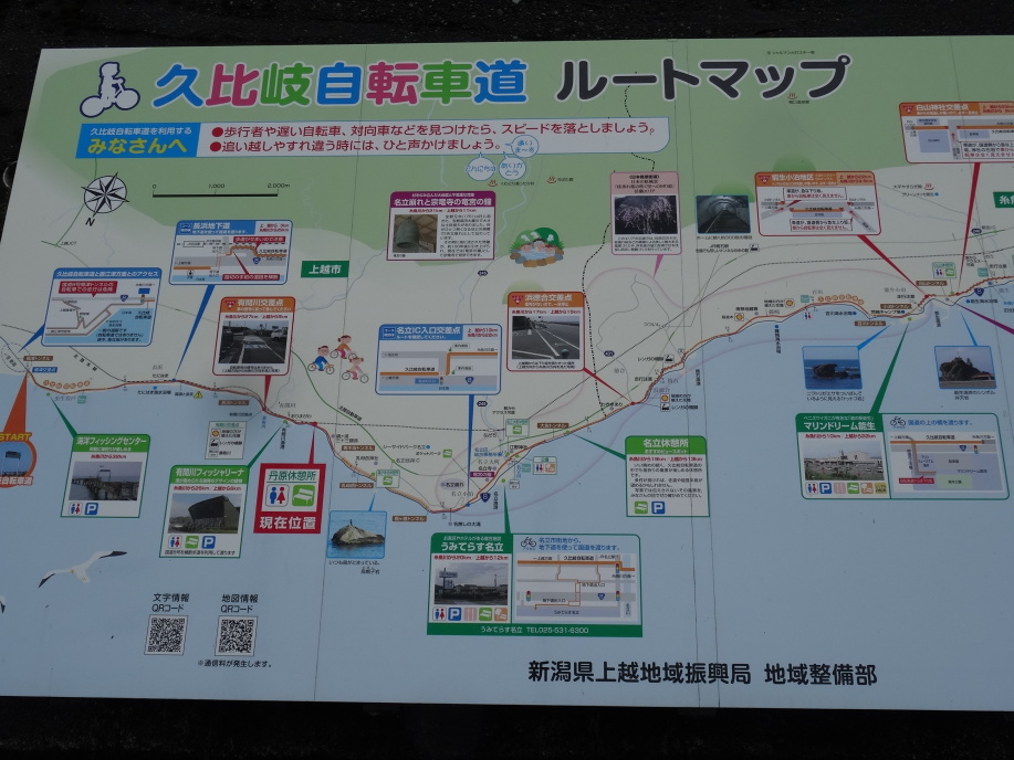 宿7:30〜五智国分寺9:10〜久比岐自転車歩行者道入口(郷津)10:30〜名立13:30〜能生17:10 |