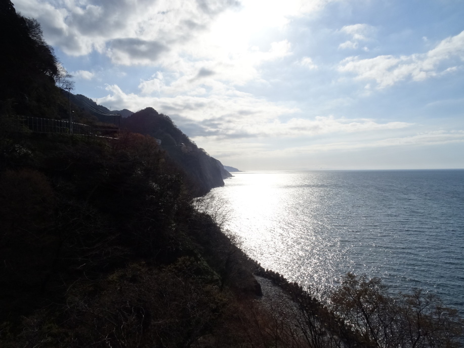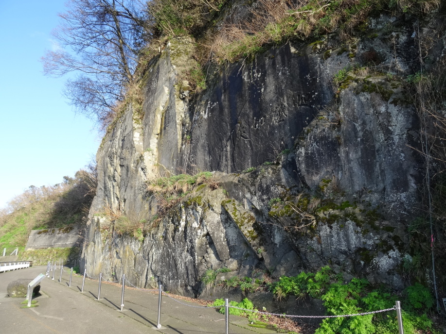 好天に恵まれ気持良くスタート。糸魚川の中宿で自転車歩行者道が終わると市街地へ。芭蕉が躓いてびしょ濡れになった早川を越えて暫く行くと「雪鶴」の田原酒造、少し先には相馬御風の生家があります。こちらは見学に事前予約が必要とのことで残念ながら素通り。 親不知駅からは宿の車で送迎してもらいました。この途中、奥の細道を歩いていること、明日も危険回避で親不知駅から市振駅まで電車を使うなど話していると、市振まで国道8号線の下に地元の人しか知らない道があると教えてくれました。その道へ降りる場所とか難所のポイントなど案内してくれながらホテルに到着。まだ時間があるのでホテル脇から親不知コミュニティロードを散策、「如砥如矢(とのごとしやのごとし)」絶壁を切り開いて明治16年に完成した旧北陸道の喜びを刻んだ跡がありました。また、最近整備されて通れるようになった旧北陸本線の親不知トンネル670mを歩きました。 |