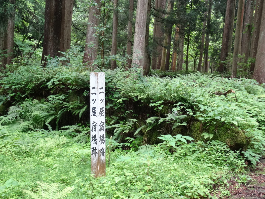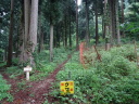 オヤジさんが昨日の朝7時頃、家の前の杉の木の上7,8mに熊がいたと言い出しました。犬が吠えたが俊敏な動きで逃げたそうです。クワバラクワバラ。これで犬が放し飼いされている訳が分りました。熊が出たら杖は捨てる、下だけでなく上にも注意しながら歩くなど注意をされて峠を下りました。