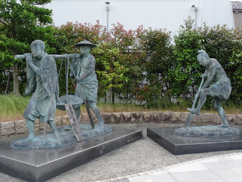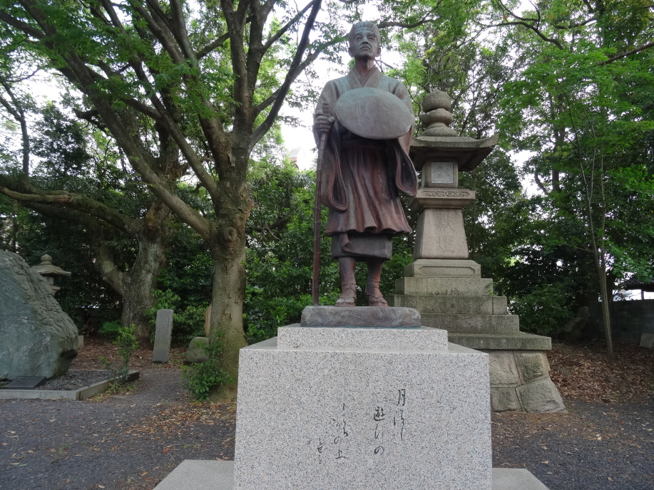芭蕉像と「月清し遊行のもてる砂の上」の句碑、その脇に初案の「なみだしくや遊行のもてる砂の露」、又、芭蕉翁月五句として「国々の八景更に気比の月」「月清し遊行のもてる砂の上」「ふるき名の角鹿や恋し秋の月」「月いつく鐘は沈る海の底」「名月や北國日和定なき」が巨大な自然石に刻まれていました。