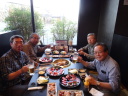 松阪から一駅戻って六軒からスタート。市場庄町や久米町は古い町並みそのままで、良く残してくれていると感謝の気持ちで歩いていました。舟木家の長屋門は立派で南北朝時代から続く当家の格式を示しています。松阪に着くと三井家発祥地にライオン像がいます。これは平成27年に三越から松阪市に寄贈されたもの。 本居宣長旧居跡から松阪城址のある松阪公園へ。城跡を歩いた後は本居宣長記念館、本居宣長生家(鈴屋)を見学、本居宣長ノ宮を詣でて先に進みます。櫛田橋の手前の民家の門柱が櫛田橋で使われていたらしい石柱でした。どういう経緯か分かりませんがちょっとビックリ。櫛田川を渡って暫く行くと「斎王まつり」の幟が目につきます。この辺りは昔、斎宮があった場所で、今でも発掘調査が続けられています。斎宮歴史博物館を見学した後、発掘調査の現場、史跡斎宮跡を10分の1に縮小した模型のある斎宮跡歴史ロマン広場、斎宮の正殿、東西脇殿を復元した「さいくう平安の杜」を経て宮川駅から松阪に戻りました。尚、斎王まつりは6月4日、5日。ボランティアの方に誘われたが予定があるので丁重にお断り。 松阪に戻ると嬉しい出会いが。最終日の伊勢参りを一緒に歩こうと、新井曾良、山口露通、石井越人が集まってくれました。曾良は2日目に春日部から歩いて以来、露通・越人も一昨年、出羽三山を一緒に登った仲、有難いことです。先ずは松阪牛の焼肉を「千力」で、美味かった。2次会は「竹の子」で日本酒。楽しい前夜祭でした。 |