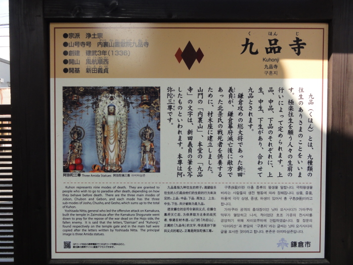 | 9時に鎌倉駅を出発して、一番札所の杉本寺を目指します。天気は良好、気持ち良いスタートです。杉本寺でご朱印帳を買って発願の印ももらい、いよいよ鎌倉三十三観音ご朱印の旅の始まりです。 出来るだけ順番通りに回ることにしたので、次は少し戻って2番宝戒寺です。3番安養院、4番長谷寺は少し離れているので、ここだけ後回しにして、鶴岡八幡宮を経て、5番の来迎寺へ。ここからは順番に従って参拝しました。途中の7番光触寺では「本日は都合によりご朱印は出来ない」とのこと残念。 光触寺から鎌倉駅方面に戻りながら、8番、9番、10番をお参り、報国寺は竹の庭が綺麗でした。鎌倉駅近くのお寺を回ってから材木座周辺へ。14番から20番までがここ材木座に集中しています。M渕氏の家もこの近くか。 本日はここまでとして宿へ。材木座海岸、由比ガ浜を海岸沿いに歩いて成就院に近い宿へ。宿泊客は一人、チョット申し訳ない感じもしました。 |