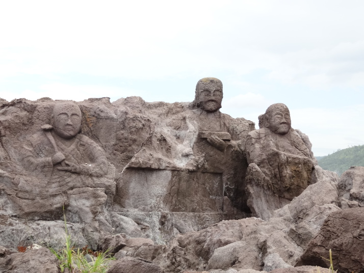吹浦には芭蕉歌碑『あつみ山吹浦かけて夕すずみ』と十六羅漢岩があります。