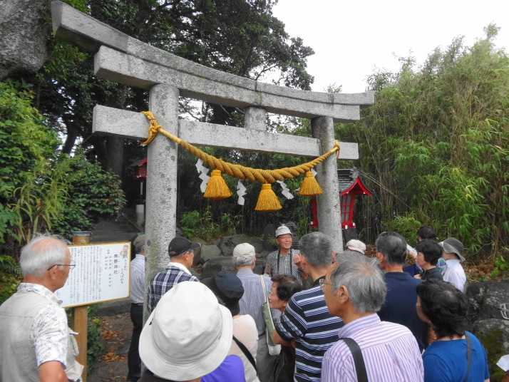芭蕉の宿泊した向屋跡や能登屋跡、祭礼に行った熊野神社などを説明してもらいながら散策し、道の駅「ねむの丘」から象潟を眺めました。
