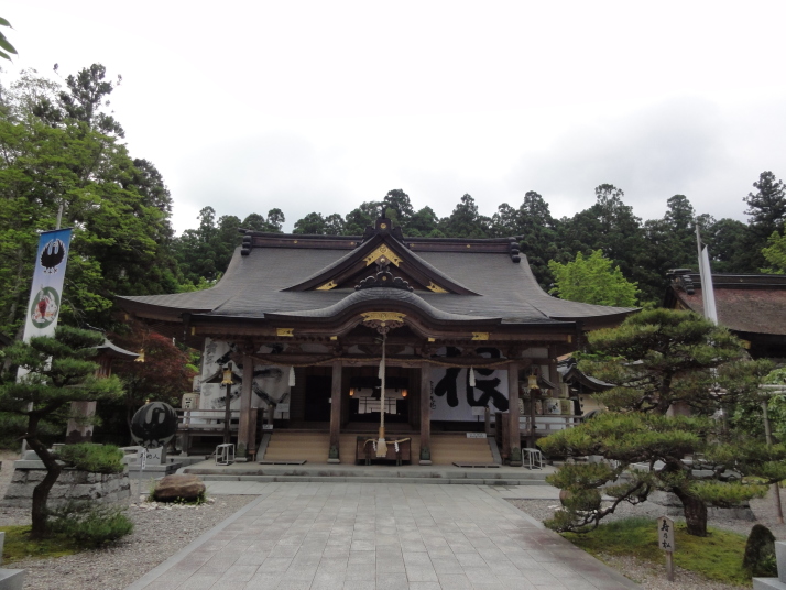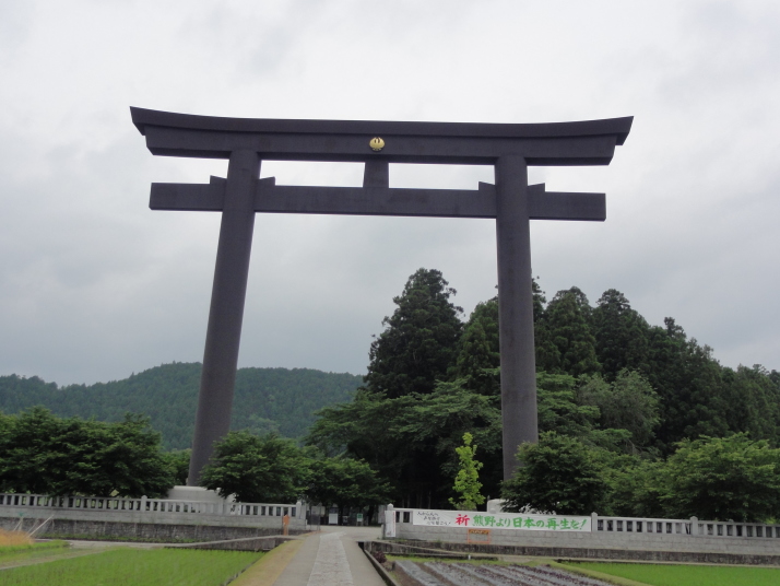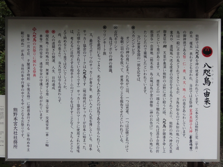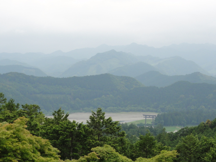 6時半に宿を出発、小広峠まで車で送ってもらいました。雨が降っていて雨具の用意をして7時にスタート、直ぐに熊瀬川王子です。その後は急な登りを進んで7時20分に草鞋峠(592m)に着きました。この先は女坂の下り坂になり、仲人茶屋跡(470m)を過ぎると男坂の急な登りになり、登りきったところに岩神王子(655m)があります。ここからは急な下りに変わります。途中、王子製紙社有地の立札が幾つか立っていました。おぎん地蔵、一里塚を経て9時15分に湯川王子(400m)に到着。この辺りは湯川一族発祥の地でもあります。ここから登りに変わり、登りきった所が三越峠(550m)で三越峠関所跡がありました。付近には綺麗なトイレ・休憩所があり、暫し休憩です。 三越峠からは急な下りになり、11時前に船玉神社(230m)に到着、更に進んで猪鼻王子にに着きました。これからは登り下りを繰り返しながら高度を下げて本宮大社(89m)に向かうことになります。11時20分に発心門王子に到着。発心門とは、悟りの心を開く入口(門)という意味でここからが熊野本宮大社の神域とされています。旅館の主に言われたように、手前の鳥居の前で2拝・2拍手・4拝×2して本宮大社に入るお願いをしました。その先の発心門休憩所で昼食。今日は旅館で作ってくれたお弁当で、米3粒を大地に与えてから食べました。そこで初めて男性2人連れと会いました。 次の水呑王子は道を間違えて通過してしまったようです。12時50分に伏拝(ふしおがみ)王子に到着しました。熊野御幸では京都を出発して12日目前後にこの辺りに到着し、熊野三山の最初の目的地である本宮大社が遥か彼方の熊野川の中州に鎮座する光景を目の辺りにして、感動のあまり「伏して拝んだ」と言います。確かにここからの眺めは素晴らしい。この下の休憩所で美味しい温泉コーヒーを飲んで先を進みます。九鬼ケ口関所跡を通過して大斎原(おおゆのはら)を望む展望台を経て14時に祓所(はらいど)王子に到着、身なりを整えていよいよ熊野本宮大社を参拝です。 熊野本宮大社の創建は崇神天皇65年(B.C33年?)、主祭神は家都美御子大神で、現在の神門内にある上四社には、 本宮大社を15時半のバスで十津川温泉へ。「ゑびす荘」に泊まって明日は今回の最後の目的地である玉置神社へ向かいます。 |