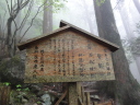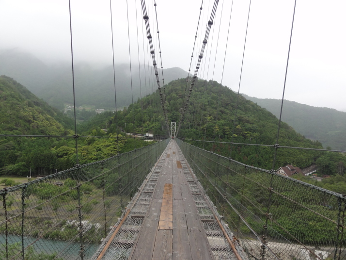 十津川村は奈良県最南部に位置し、日本一広い村(面積は奈良県の五分の一)、日本一長い路線バス(八木~新宮まで6時間半)、日本一長い谷瀬の吊橋(長さ297.7m、高さ54m)で知られるところ。又、南北朝時代の南朝ゆかりの地が多くあったり、幕末坂本龍馬暗殺では刺客が十津川郷士を名乗ったり、尊皇攘夷の過激派集団天誅組に多くの十津川郷士が参加したりと歴史の舞台にも多く顔を出しています。こんなに山深い所にどうしてと思いますが、古くは神武天皇の東征の際に吉野の山中を先導した「やたがらす」が祖先であるともいわれ、これが独特の勤皇精神を育んだのでしょうか。 ここからバス停のある折立まで下って行きます。先ずは玉置山展望台まで大峯奥駈道を歩きます。杉木立の歩き易い道が続きます。かつえ坂にある大峯奥駈道の石碑を経て11時に展望台に到着しますが雨で全く眺望が開けません。少し進んで折立に下りる道に入った途端、荒れた道に様変わりです。人が歩いた形跡が殆ど無く、荒れ放題といった感じ。特に先週の台風の影響か、木が多く倒れ、道がえぐれている箇所もあります。小枝が足に絡みついたり、滑ったりと大変です。朝のタクシーの運転手が「2ヶ月前、玉置山を登山していた夫婦が道に迷い、舗装道路に無理やり出ようとして滑落し、夫は頭を強く打って亡くなった。ドクターヘリも来て大変だった」と話していたが、その二の舞だけにはならないよう「ゆっくり・ゆっくり」「慎重・慎重」と声を出しながら進みます。何とか下が見える場所に来ましたが、その後も石だらけの急坂、最後まで気の抜けない道でした。やっとのことで車道に出ると、何と南都銀行十津川支店の脇。南都銀行恐るべしです。 折立から十津川村役場までバスで行って近くの公衆温泉「滝の湯」へ。ゆっくと温泉に入って生き返り、蕎麦とビールで遅めの昼食。更に十津川村民俗資料館を見学してから五條まで3時間弱のバス移動。途中、谷瀬の吊橋付近の休憩所で小休止。ここで八木から新宮行きの最終バスとすれ違いますが、乗客はゼロ。6時間半の路線バスで乗客ゼロは大変です。山と川の素晴らしい景色を見ながら、19時少し前に五條に到着しました。新宿行き夜行バスまで2時間ほどあるので時間調整しようと店を探しますが全くありません。駅員さんに聞いても牛丼屋は判るが居酒屋は無いよと。やっとのことでお好み焼き屋を見つけて時間を潰し、その後、初めての夜行バスに乗って帰宅の途につきました。 |
