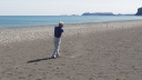 朝、T保氏と別れて今日から一人旅です。 10時に補陀洛山寺・浜の宮王子に到着。那智の浜から生きたまま船に乗り、僅かな食糧を積み、外に出られないよう釘付をして沖に船出し観音浄土を目指すという補陀洛渡海が、この地を出発点として平安時代から江戸時代まで20数回にわたり行われています。境内には補陀洛渡海船が復元され、裏の山には補陀洛渡海上人の墓があります。 ここから二つの峠(大狗子峠・小狗子峠)を越えて佐野王子へ。昼食後、高野坂を歩きます。海辺の整備された道で高台からは王子ケ浜が綺麗に見えます。紀勢本線を横切る辺りで砂浜に降り、王子ケ浜を歩きます。30分以上砂浜を歩きましたが、意外と歩き難い、いつもと違う筋肉を使っているようでした。途中でバンカーショットの練習をしているオッサンに会いました。これだけ広いバンカーがあれば思う存分練習が出来ますね。 浜王子を経て15時過ぎに阿須賀神社に到着。3日朝、I倉氏とT保氏が神倉神社でジャージー姿で笛を吹くここの宮司に会っていますが、今日もジャージー姿でとても宮司とは思えません。新宮城址を通って、16時前に熊野速玉大社(主祭神は速玉大神(イザナギノミコト))に到着。荘厳な中にも美しい神社でした。境内には、熊野御幸の碑(過去396年間に皇室23方が141回にわたり熊野詣をしている)もあります。 更に進んで、18時過ぎに紀伊井田駅に到着して今日の行程を終了としました。 |