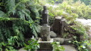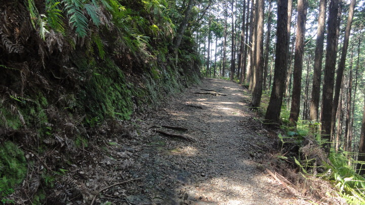 7時半前に出発、一般道を2時間半ほど歩きます。10時少し前に始神(ハジカミ)峠への山道を歩き始めました。昨日までと違って歩き易い道が続きます。10時40分に始神峠(147m)に到着、眼下には紀伊の松島と云われる島々が熊野灘に浮かんでいます。一旦、三浦の海に下りた後、三浦峠に向けて上ります。途中、復元された木橋(熊ケ谷橋)を渡って上っていきますが、三浦峠の頂上(113m)は判らないまま下って道瀬海岸に出てしまいました。 この辺りの案内表示は、伊勢から熊野へ向けて歩く人用になっていて、逆コースを歩く人には判り難くくなっています。本来は古里トンネルの上に道があるはずですが見当たりません。何度か行ったり来たりしても判らないので、仕方なく古里歩道トンネルを抜けると、トンネルを出た所に、土砂崩れで上の道は通れないのでトンネルを通るよう案内が出ていました。反対側にも是非案内表示を出してもらいたものです。 更に一石峠に向けて歩きますが、ここも入口が良く判りません。何度か行ったり来たりして道を見つけ一石峠(73m)を通過、お地蔵さんを見た後、一般道に入り、紀伊長島の街に入りました。 |