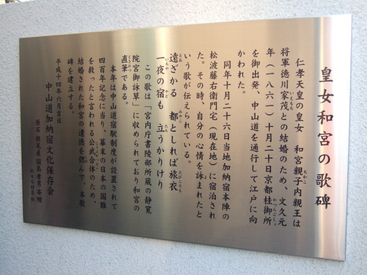 | 7時30分にホテルを出発。今日もホテル下のコンビニで昼用のお握りを買い込みました。7時50分に脇本陣跡、本陣跡を経て、皇女和宮が赤坂宿の翌日(文久元年10月26日)に宿泊した本陣松波家前に和宮直筆の歌碑がありました。加納城大手門跡から加納城址へ行き石垣を見てからまた中山道に戻り、先を進みます。狭い道に車が多く気を抜けません。 各務原市役所の庭には四季桜が咲いていました。11時25分に神明神社の境内で昼食です。 更に進んで12時40分に鵜沼宿に到着しました。明治24年の濃尾大地震で壊滅的な打撃を受け、江戸時代の建物は残っていませんが、その後の復元で落ち着いた景観の本陣跡(桜井家)や芭蕉句碑がありました。また、菊川の酒蔵もあり、いい雰囲気の場所でした。ここからうとう峠を越えて太田宿を目指します。うとう峠に入ると山道となり、雪が無くてほっとしたひと時でした。峠を下ると右手に木曽川を見ながら進むことになります。岩屋観音堂を過ぎると、日本ライン「ロマンチック街道」の遊歩道となり、美しい景色を見ながらの気持ちよいウオーキングになりました。15時に太田宿に到着、本陣跡や脇本陣(林家)があります。特に林家は240年前の建物で屋根に本卯建が上っている立派なもので、国の重要文化財に指定されています。そして今でもここに住んでいるとのこと。また、近くに造り酒屋「御代桜」もあり、ここもいい雰囲気の宿場でした。 |